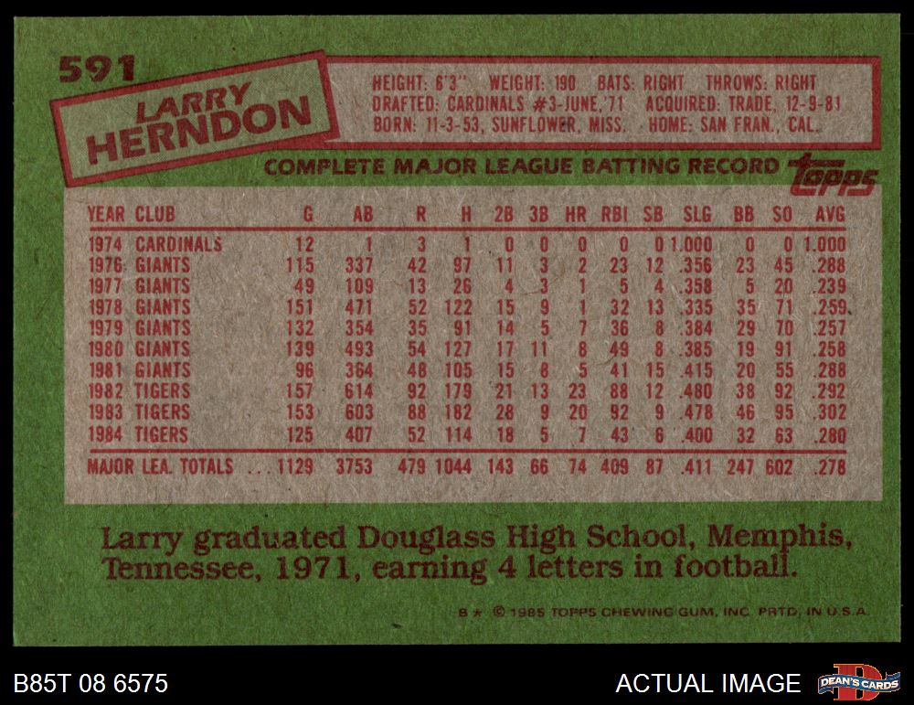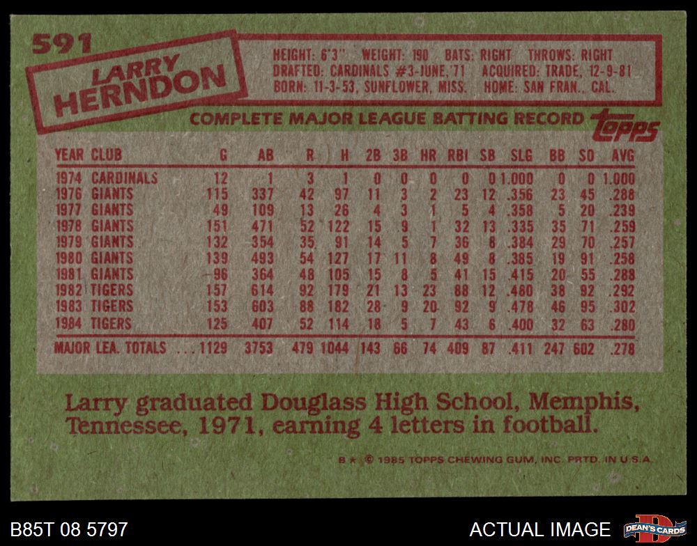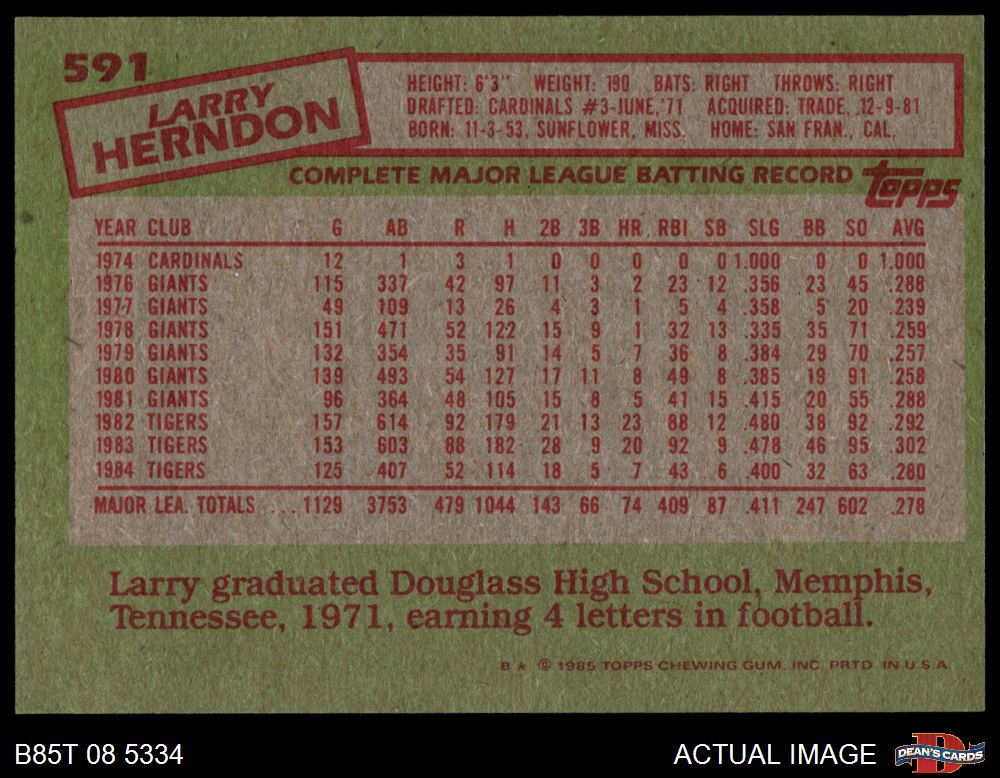 1985 Topps #591 Larry Herndon