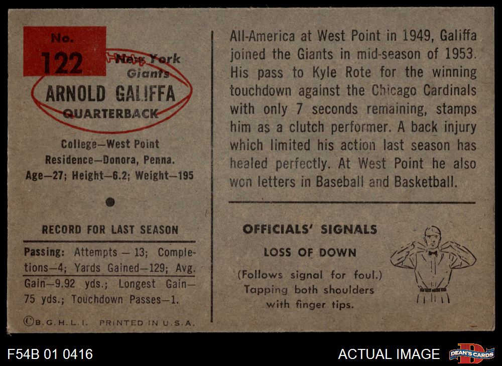 1954 Bowman #122 Arnold Galiffa 5 - EX