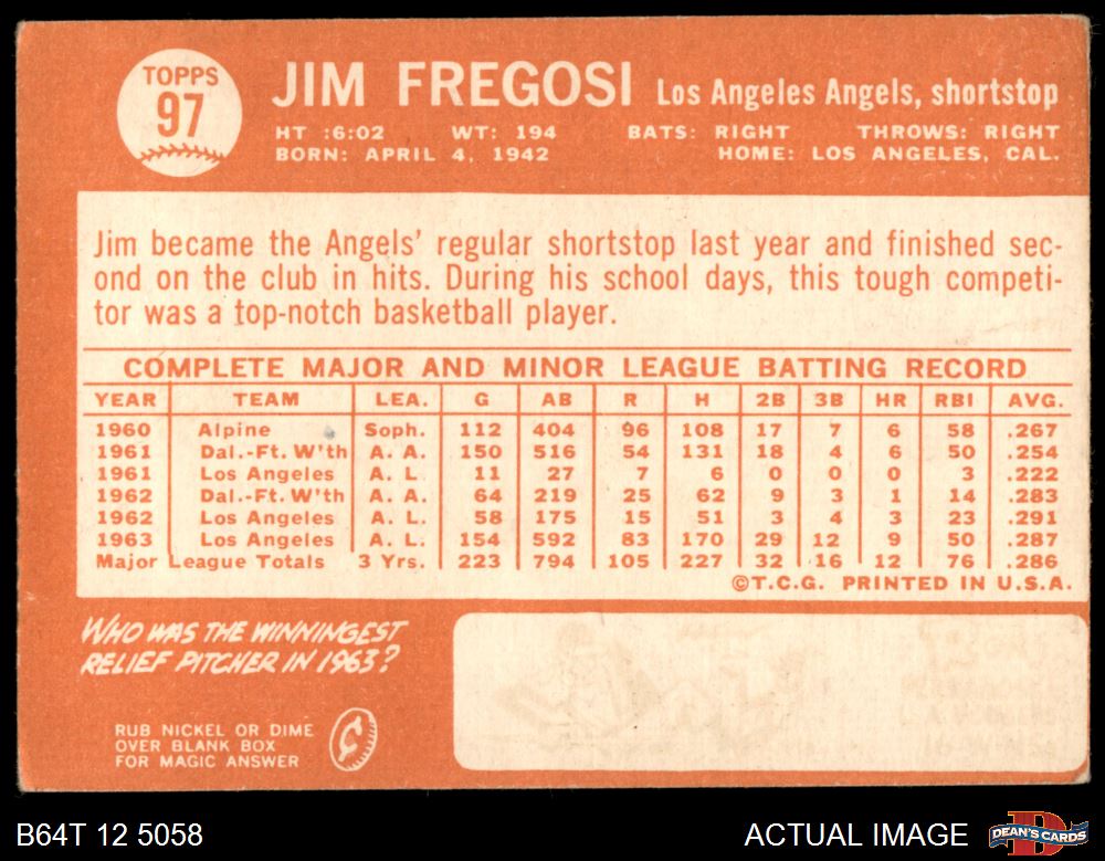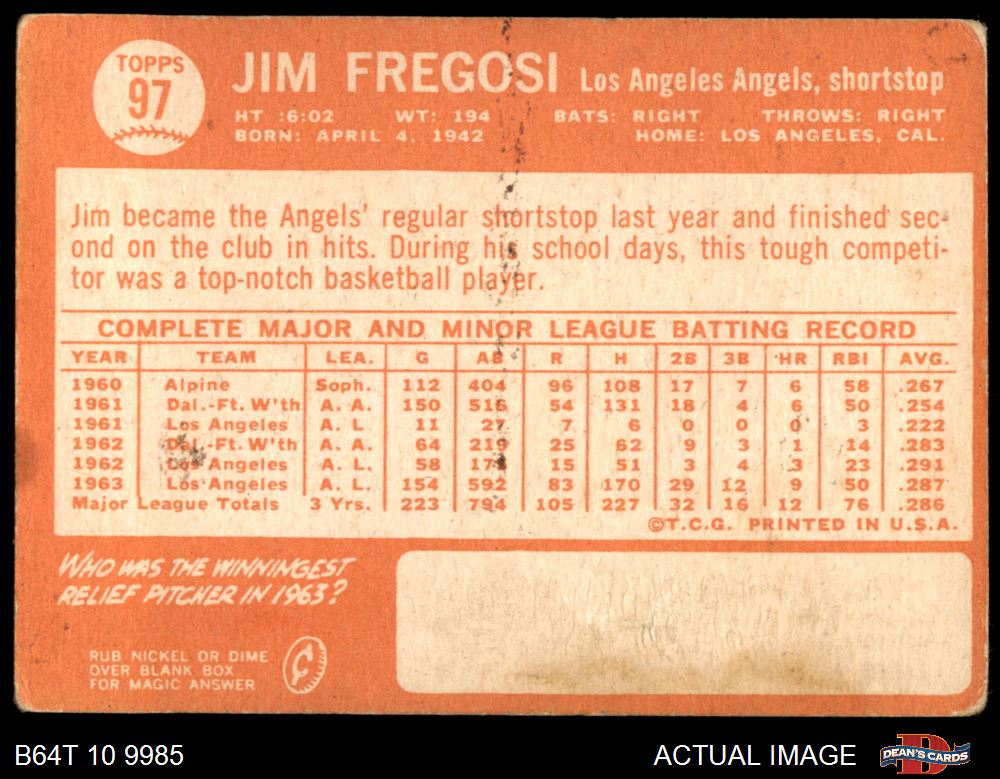 1964 Topps #97 Jim Fregosi 1.5 - FAIR