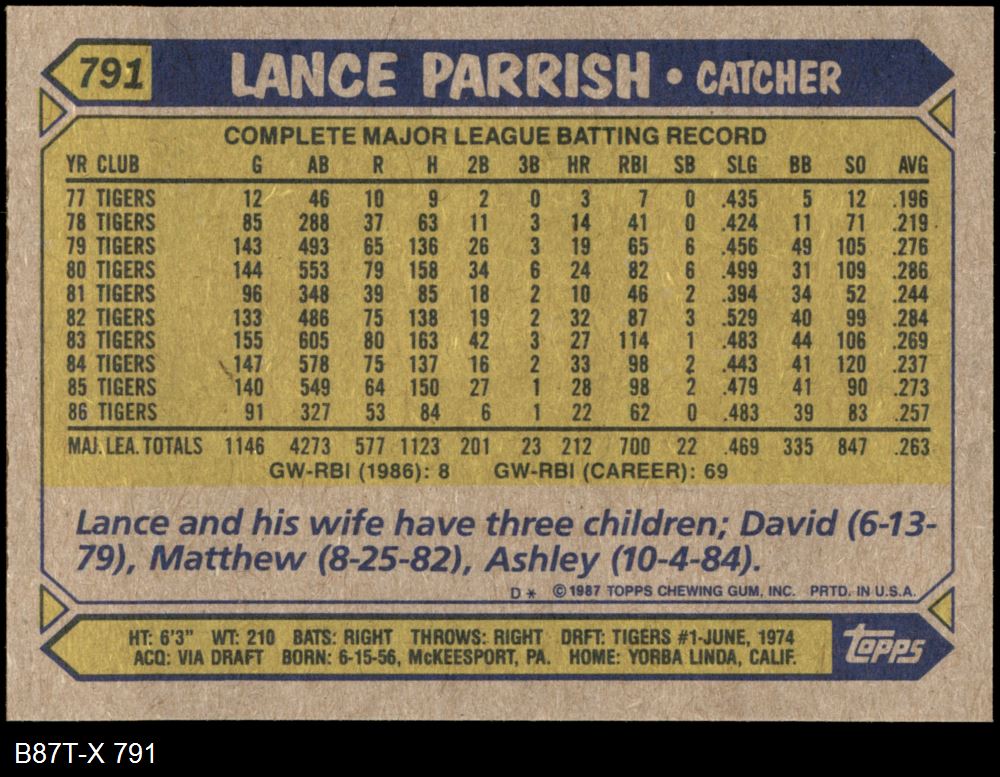 1987 Topps #791 Lance Parrish