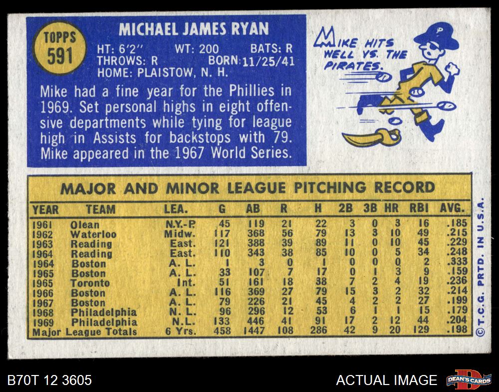 1970 Topps #591 Mike Ryan