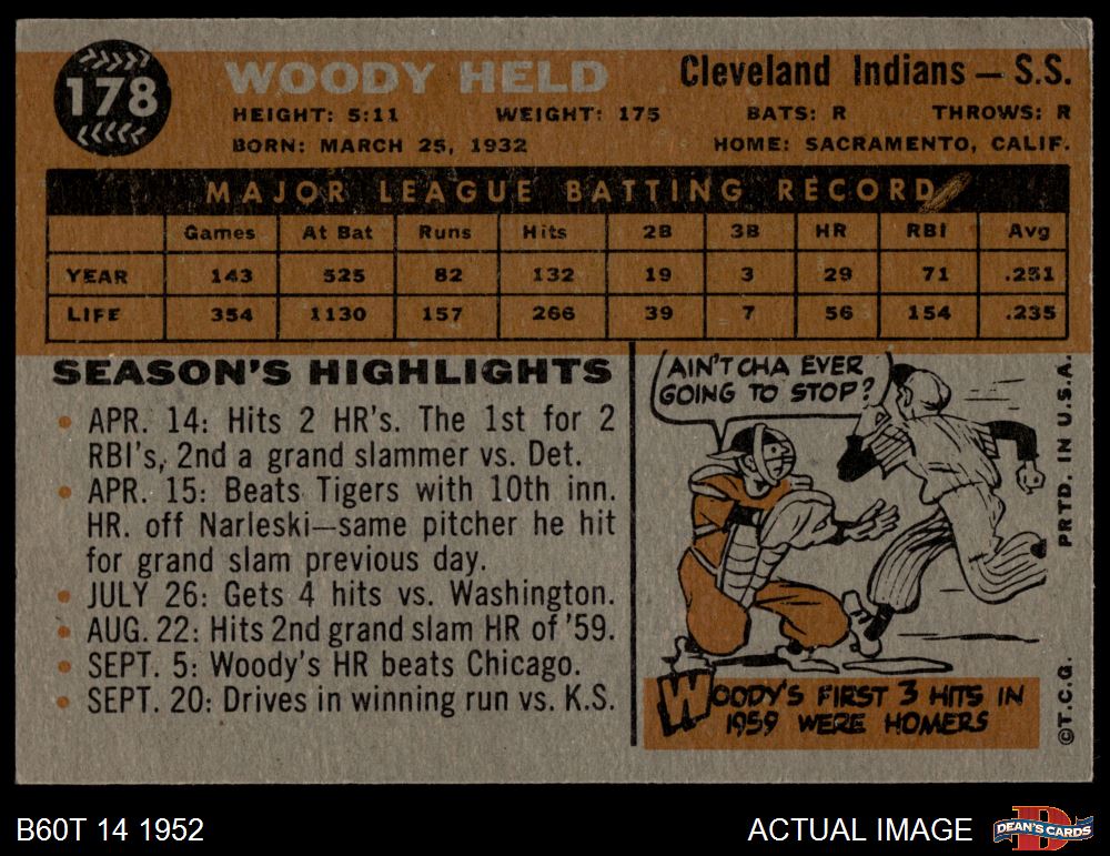1960 Topps #178 Woodie Held 4.5 - VG/EX+