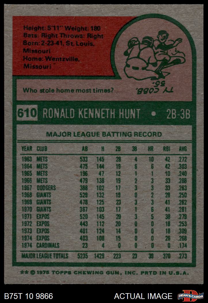 1975 Topps #610 Ron Hunt 6 - EX/MT