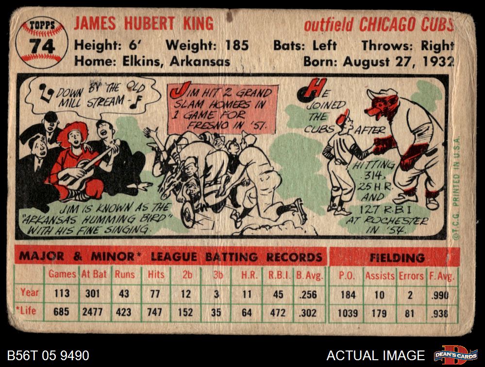 1956 Topps #74 Jim King AUTHENTIC