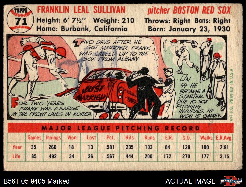 1956 Topps #71 Frank Sullivan 1.5 - FAIR