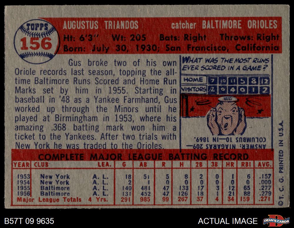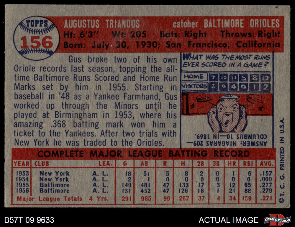 1957 Topps #156 Gus Triandos 4 - VG/EX