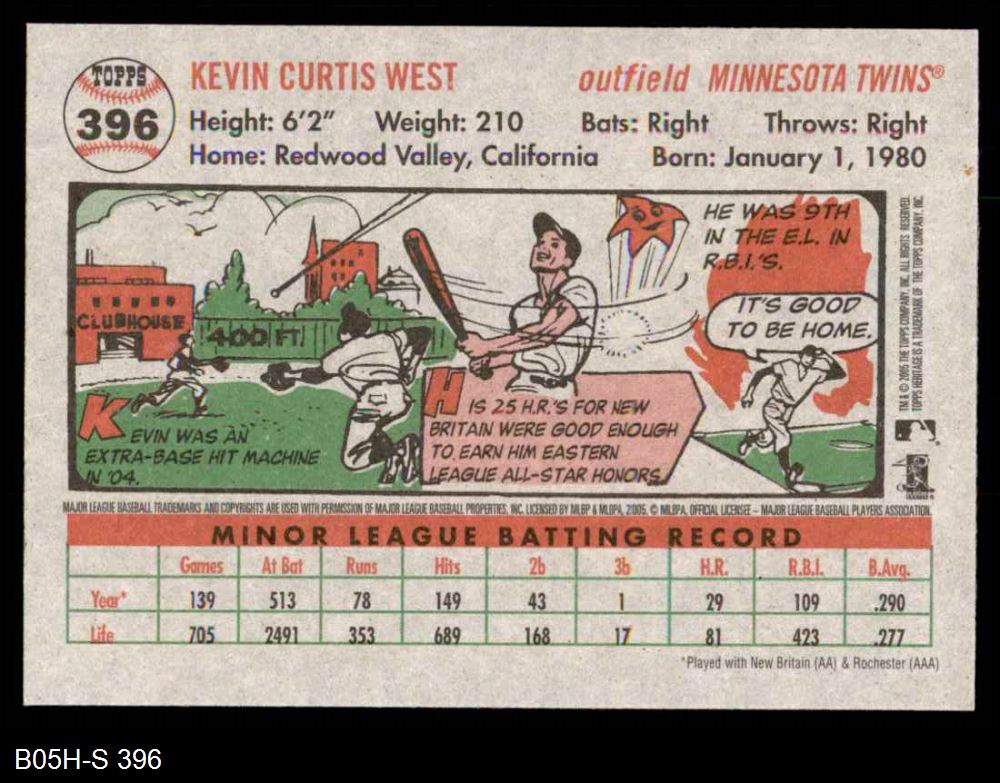 2005 Topps Heritage #396 Kevin West