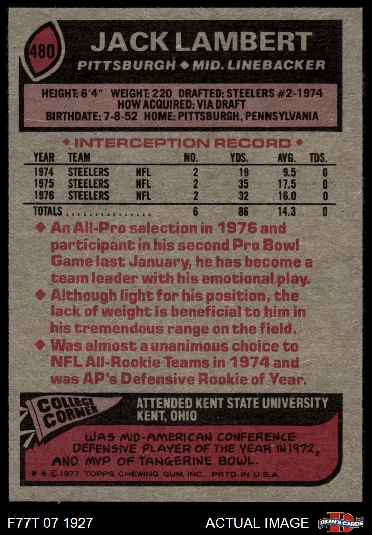 1977 Topps #480 Jack Lambert