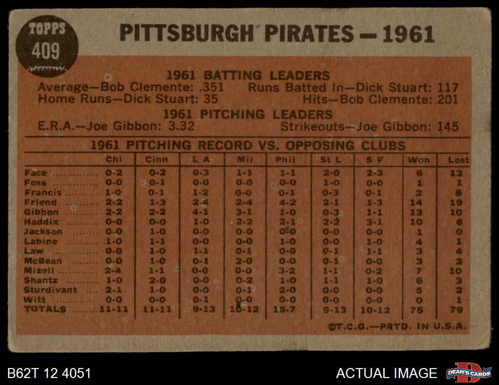 1962 Topps #409 Pirates Team 1.5 - FAIR