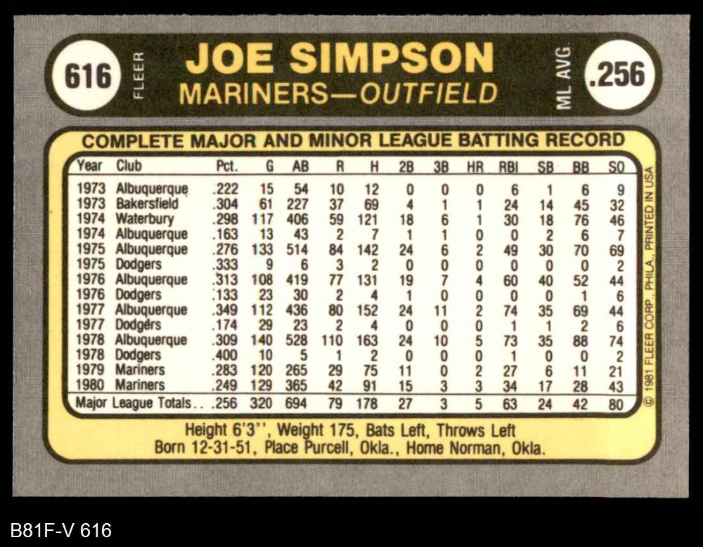 1981 Fleer Baseball Cards (4,688 available)1981 Fleer Mariners (150 available)