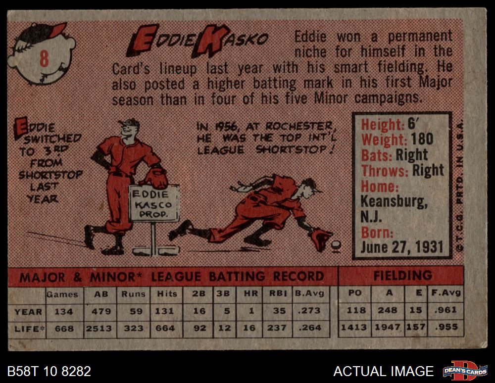 1958 Topps #8 WN Eddie Kasko 3 - VG