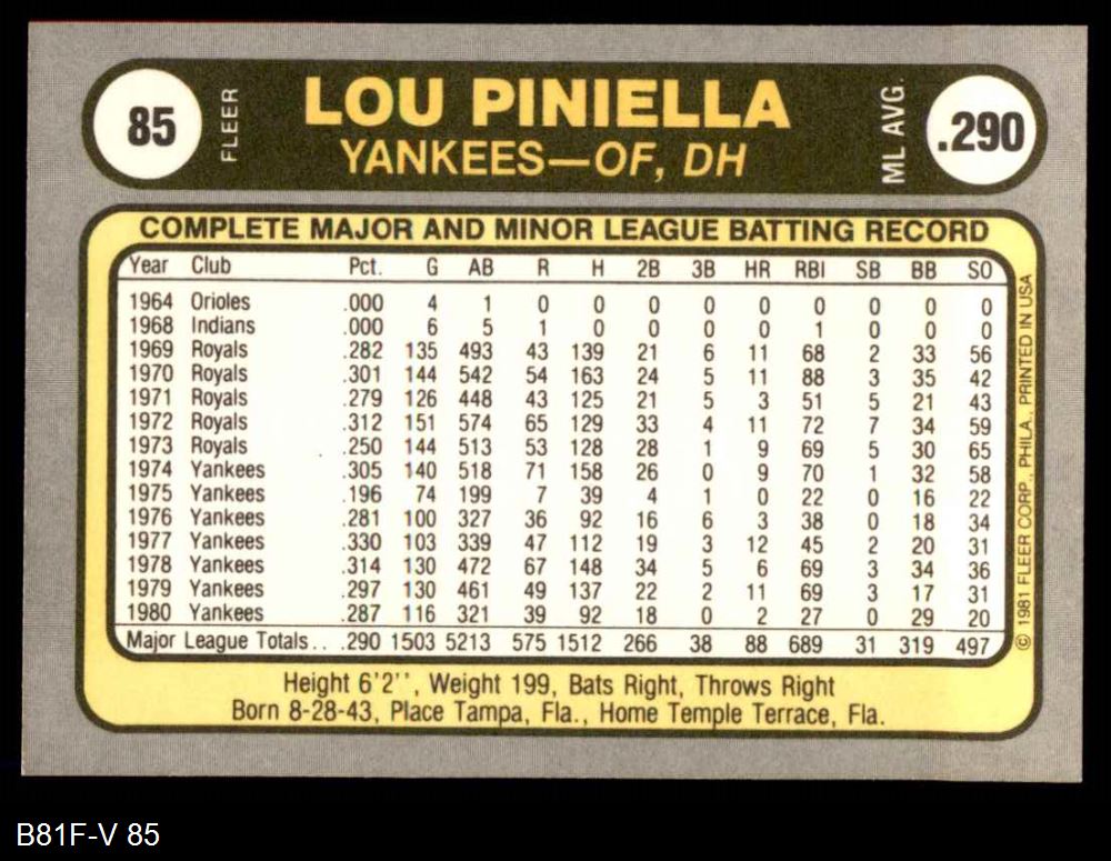 1981 Fleer Baseball Cards (4,688 available)1981 Fleer Yankees (154 available)