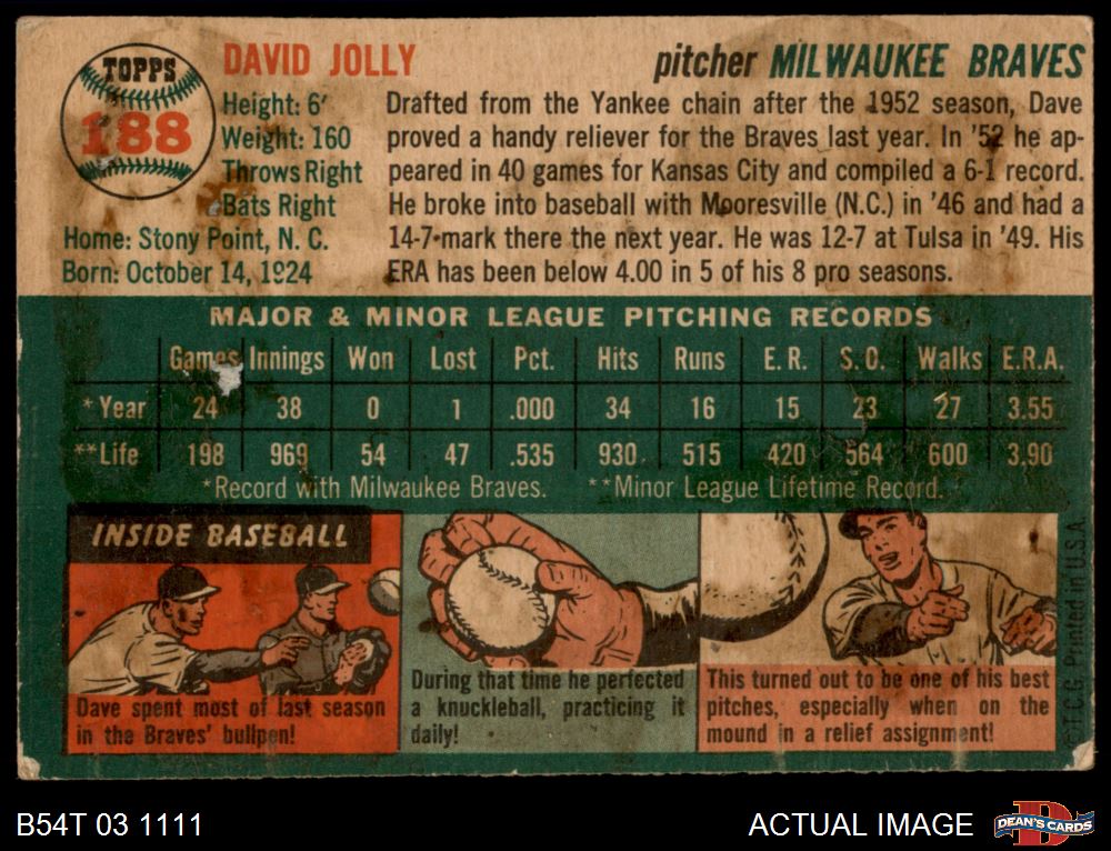 1954 Topps #188 Dave Jolly 1 - POOR