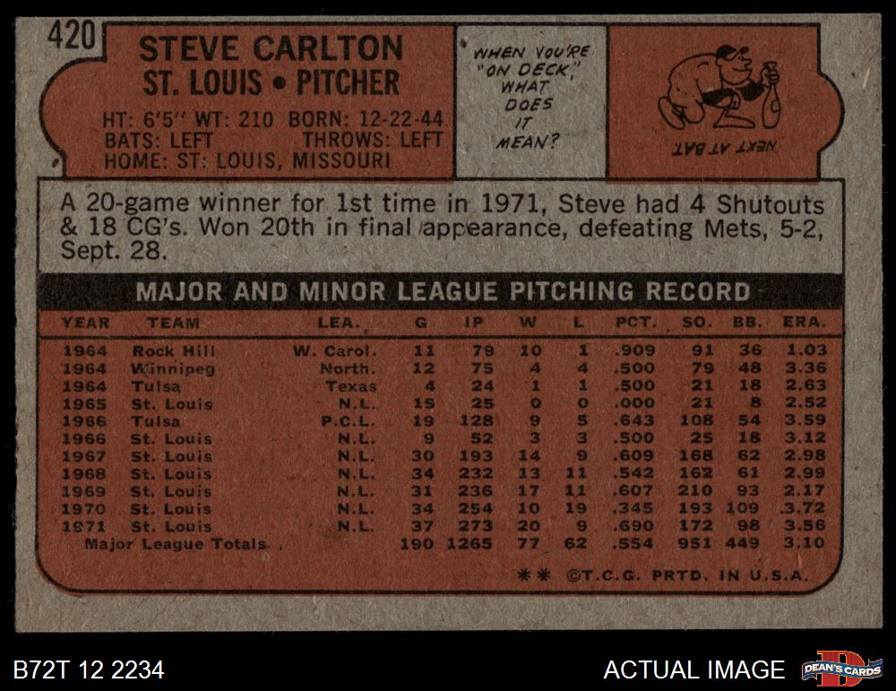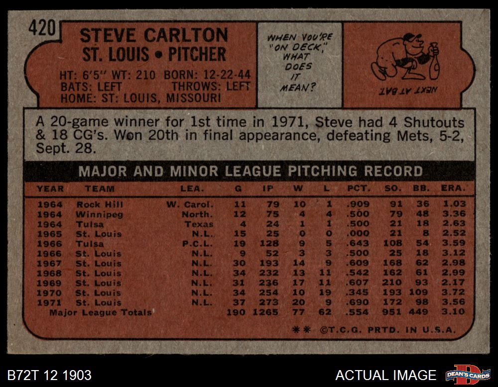 1972 Topps #420 Steve Carlton
