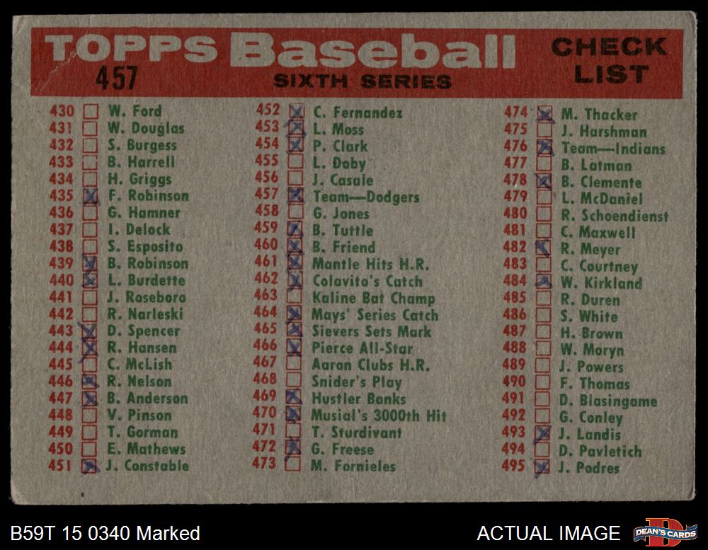 1959 Topps #457 Dodgers Team Checklist 1.5 - FAIR