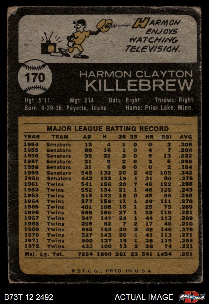 1973 Topps #170 Harmon Killebrew AUTHENTIC