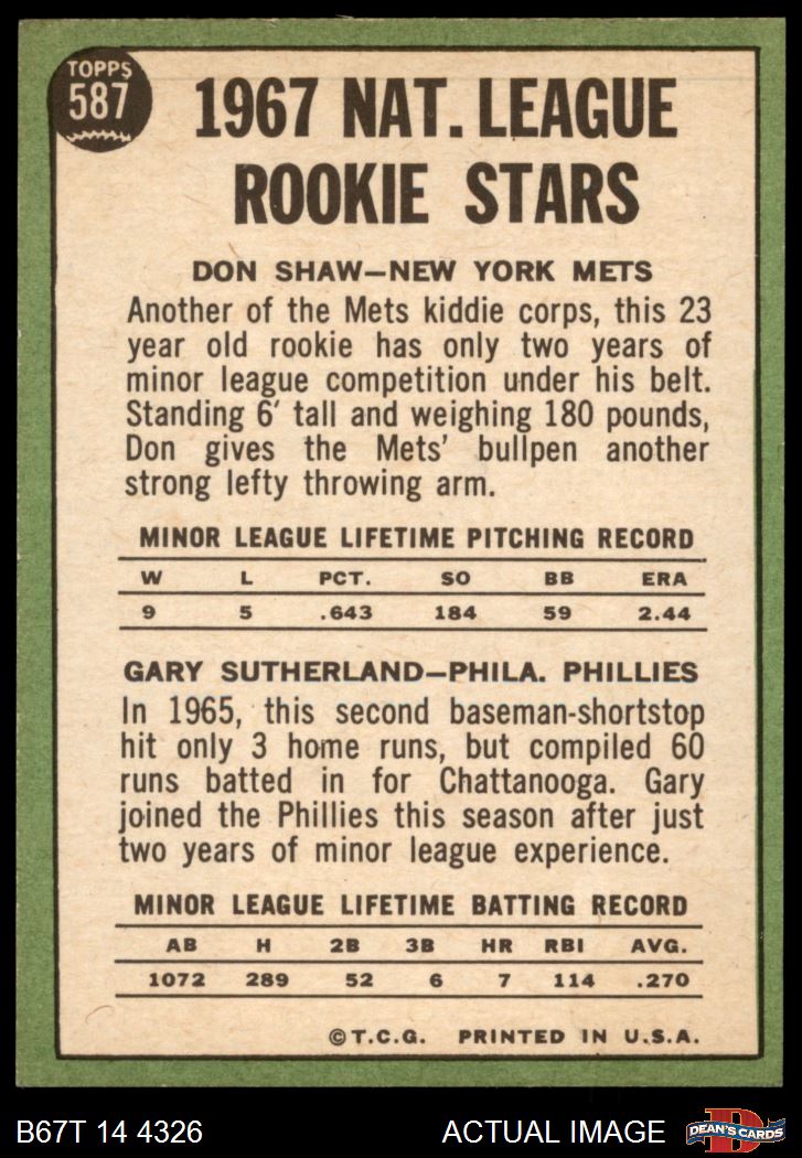1967 Topps #587 - Don Shaw / Gary Sutherland NL Rookies 6 - EX/MT