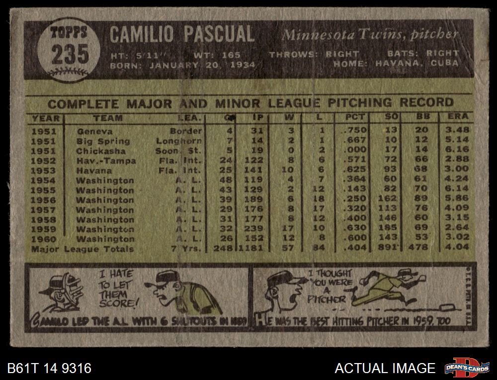 1961 Topps #235 Camilo Pascual 1.5 - FAIR