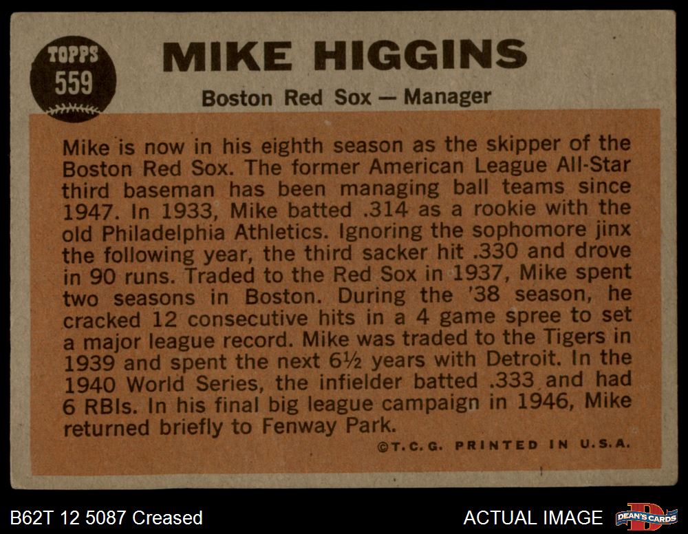 1962 Topps #559 Mike Higgins