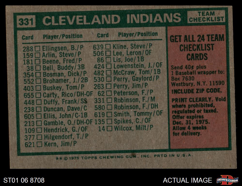 1975 Topps Baseball Cards (10,715 available)1975 Topps Indians (888 available)
