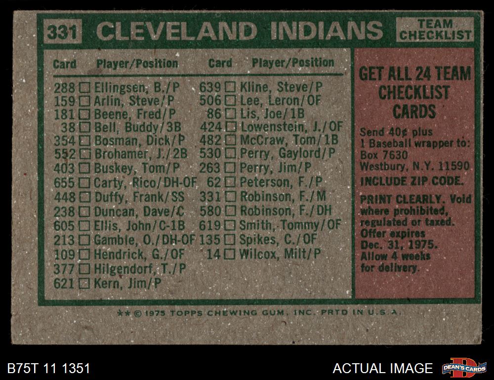 1975 Topps Baseball Cards (15,269 available)1975 Topps Indians (955 available)