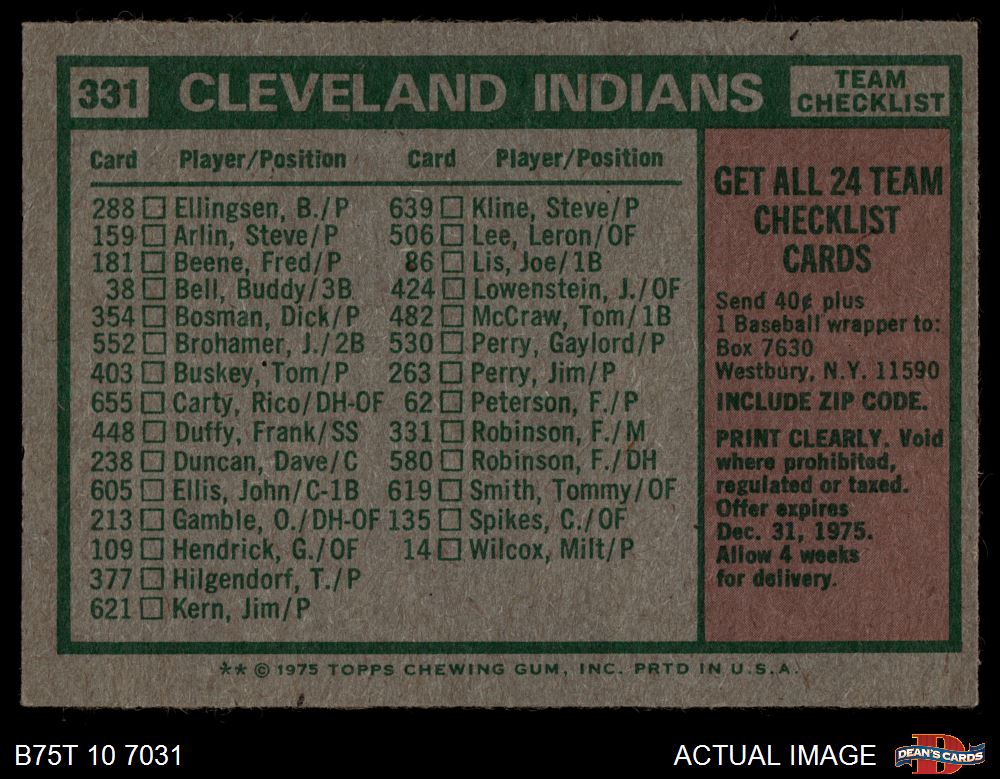 1975 Topps #331 - Frank Robinson Indians Team Checklist 5 - EX