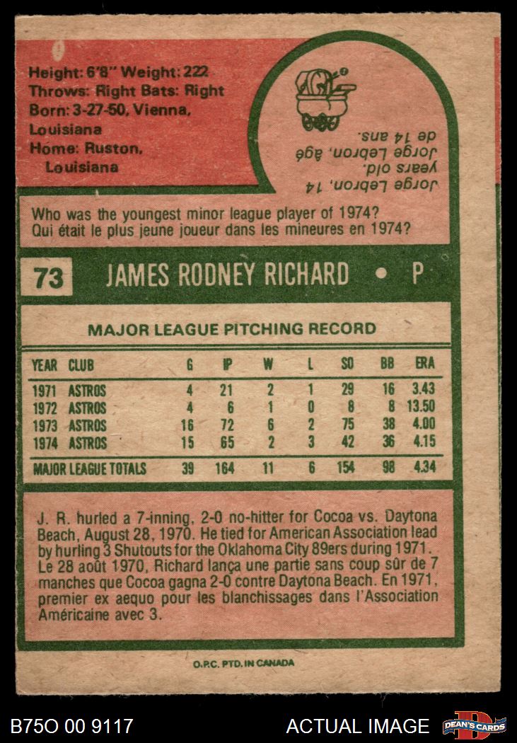 1975 O-Pee-Chee #73 J.R. Richard 3 - VG