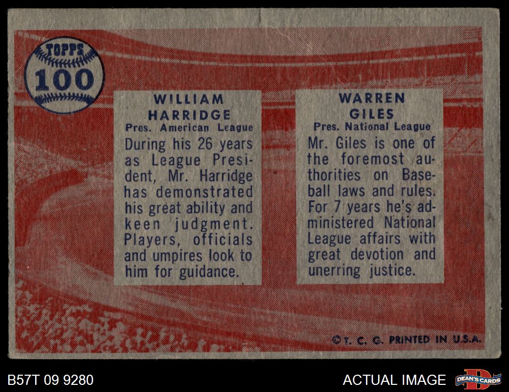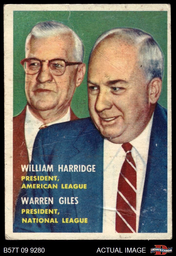 1957 Topps #100 Warren Giles / William Harridge 1 - POOR