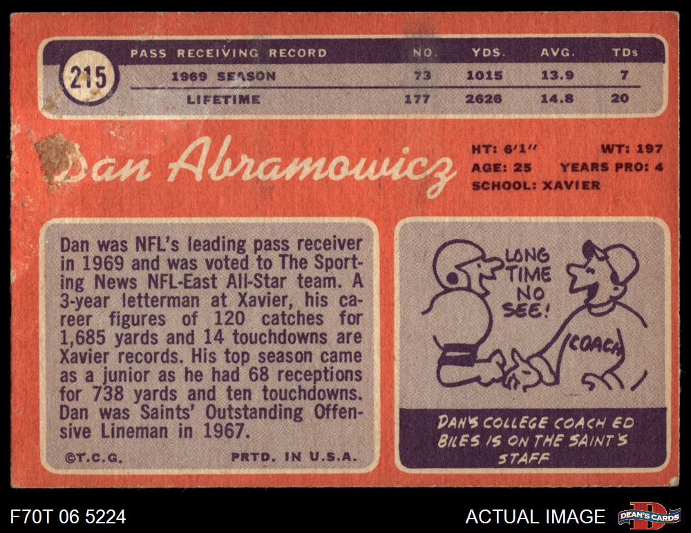 1970 Topps #215 Dan Abramowicz Front Thumbnail