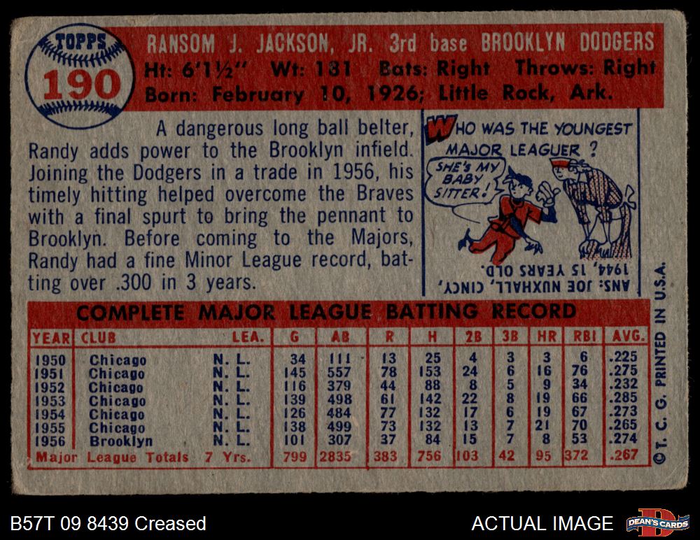 1957 Topps #190 Randy Jackson Front Thumbnail