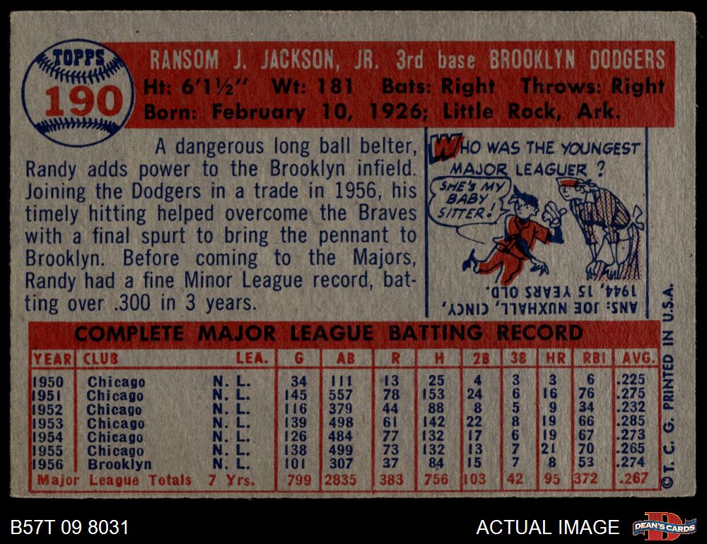 1957 Topps #190 Randy Jackson