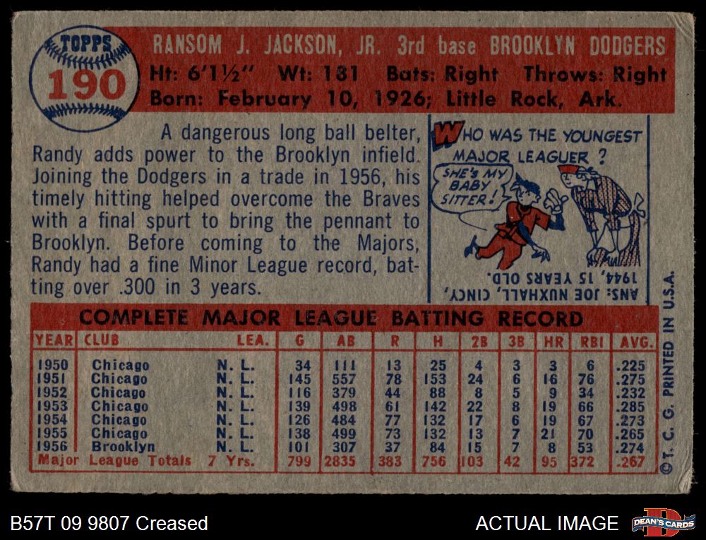 1957 Topps #190 Randy Jackson 2 - GOOD