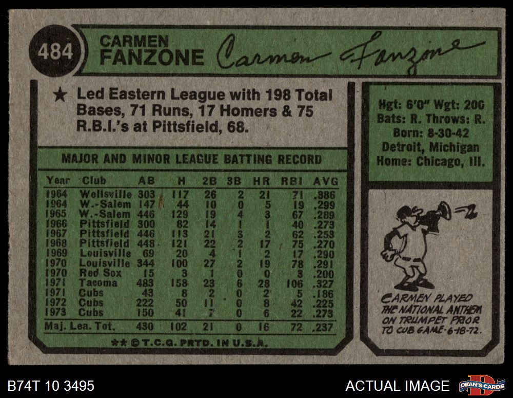 1974 Topps #484 Carmen Fanzone 3 - VG