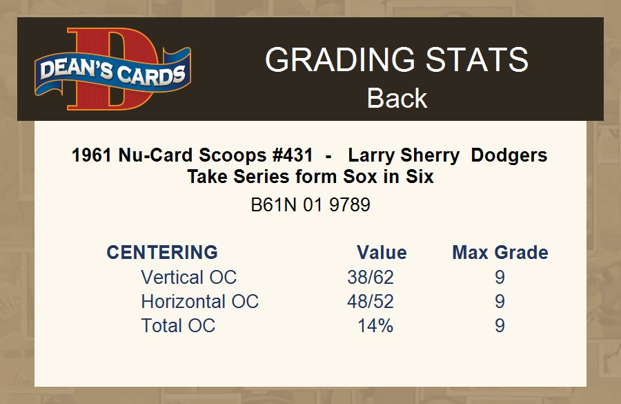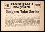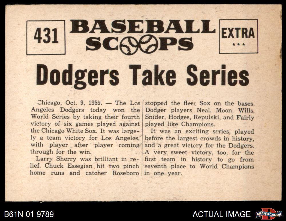 1961 Nu-Card Scoops #431 Dodgers Take Series form Sox in Six