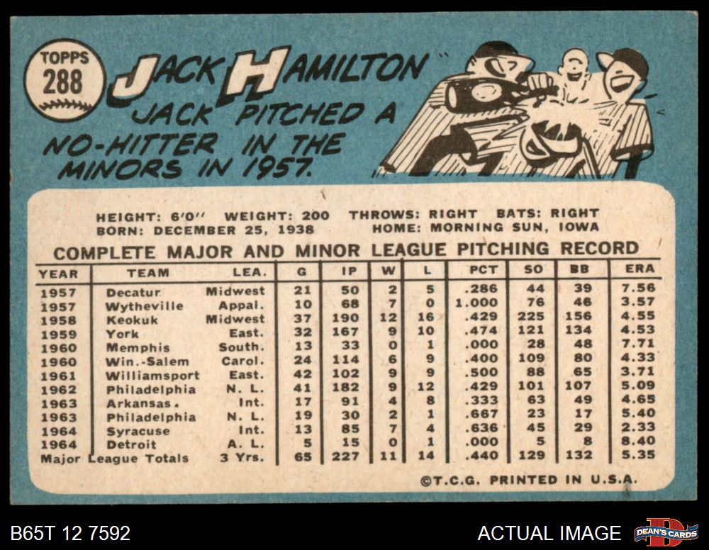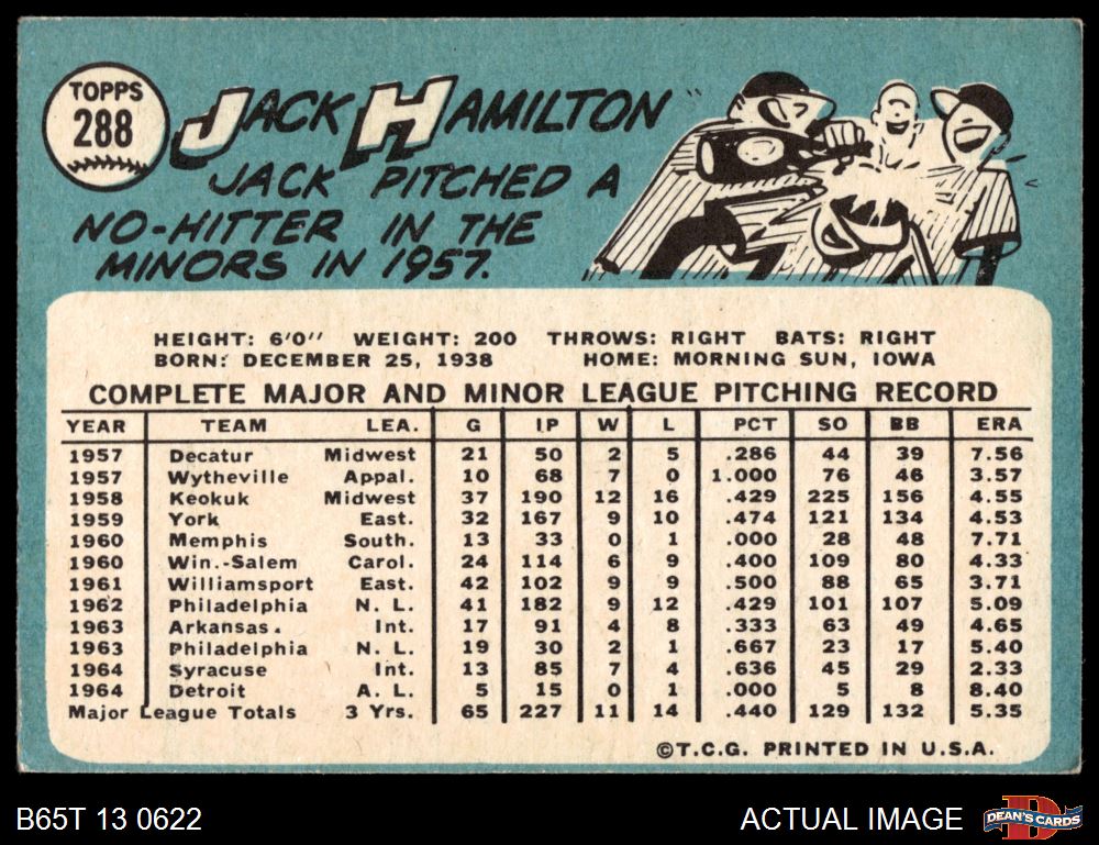 1965 Topps #288 Jack Hamilton 4 - VG/EX