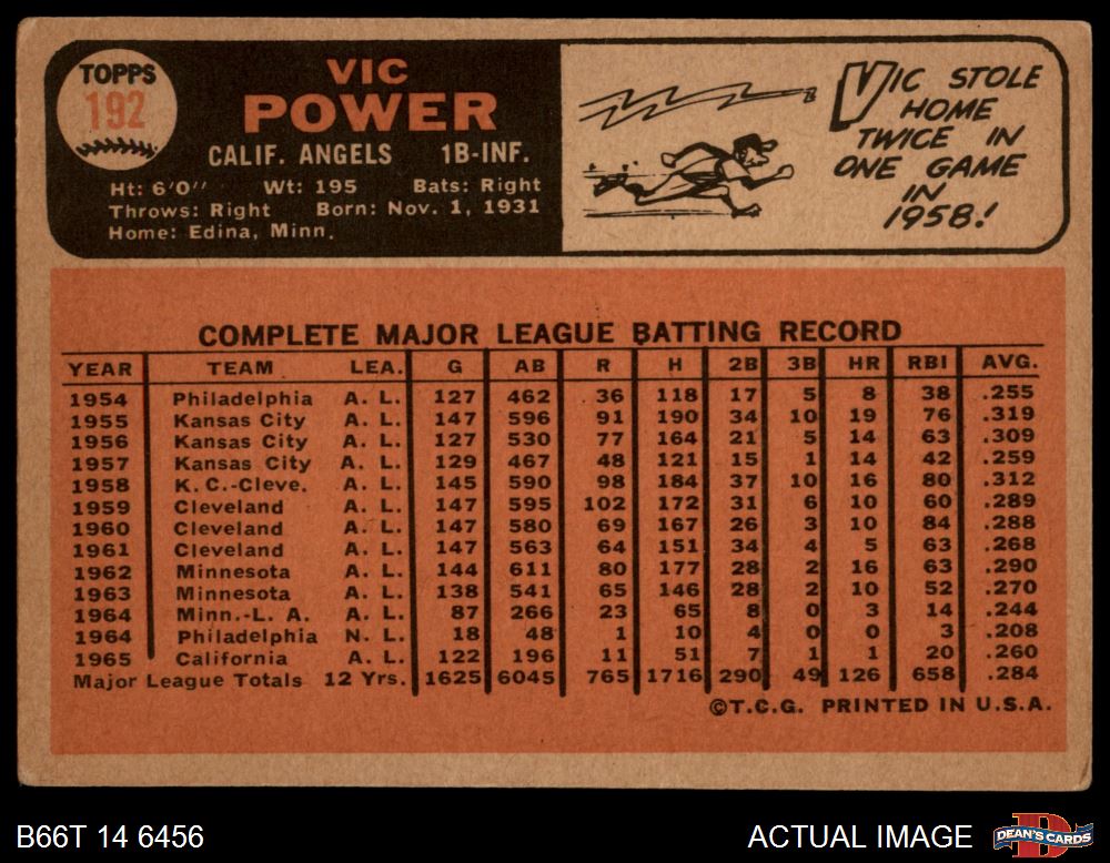 1966 Topps #192 Birth Date listed as 1931 instead of 1927 Vic Power 1.5 - FAIR