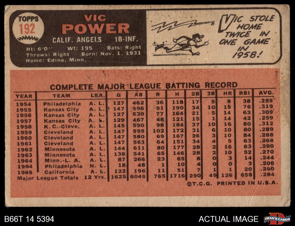 1966 Topps #192 Birth Date listed as 1931 instead of 1927 Vic Power 2 - GOOD