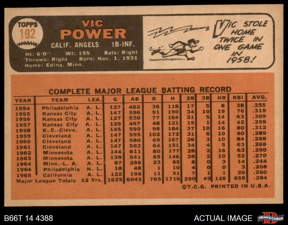 1966 Topps #192 Birth Date listed as 1931 instead of 1927 Vic Power 4 - VG/EX