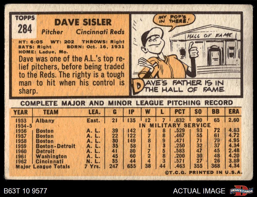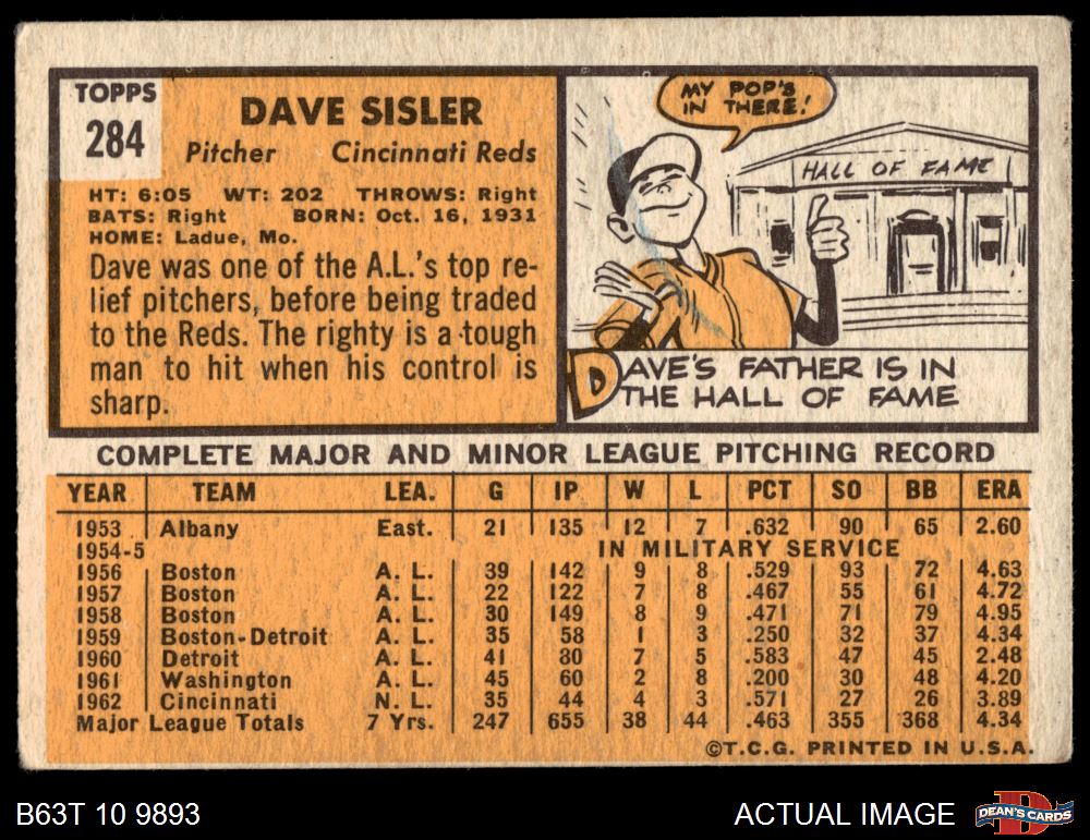 1963 Topps #284 Dave Sisler 2 - GOOD