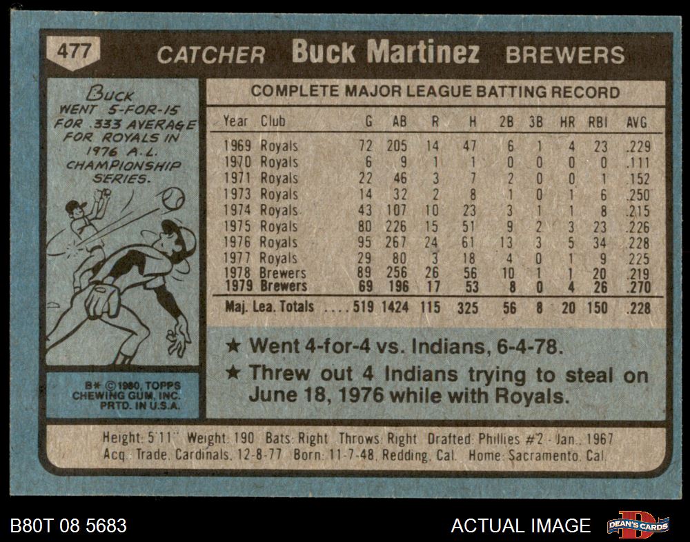 1980 Topps #477 Buck Martinez