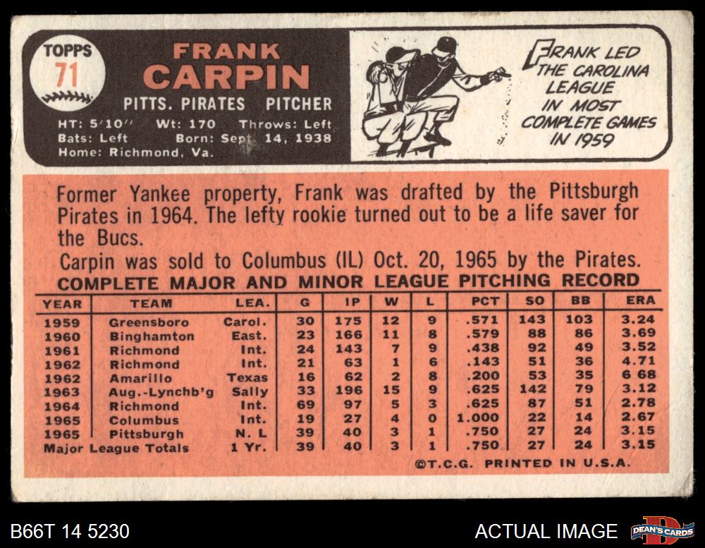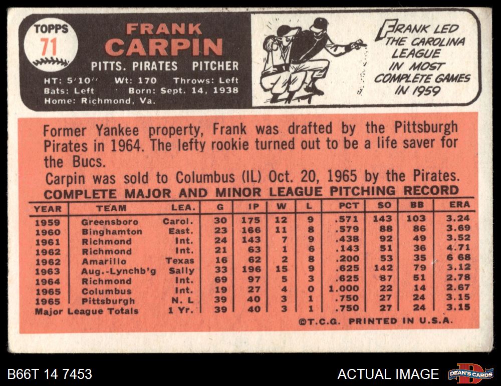 1966 Topps #71 Frank Carpin