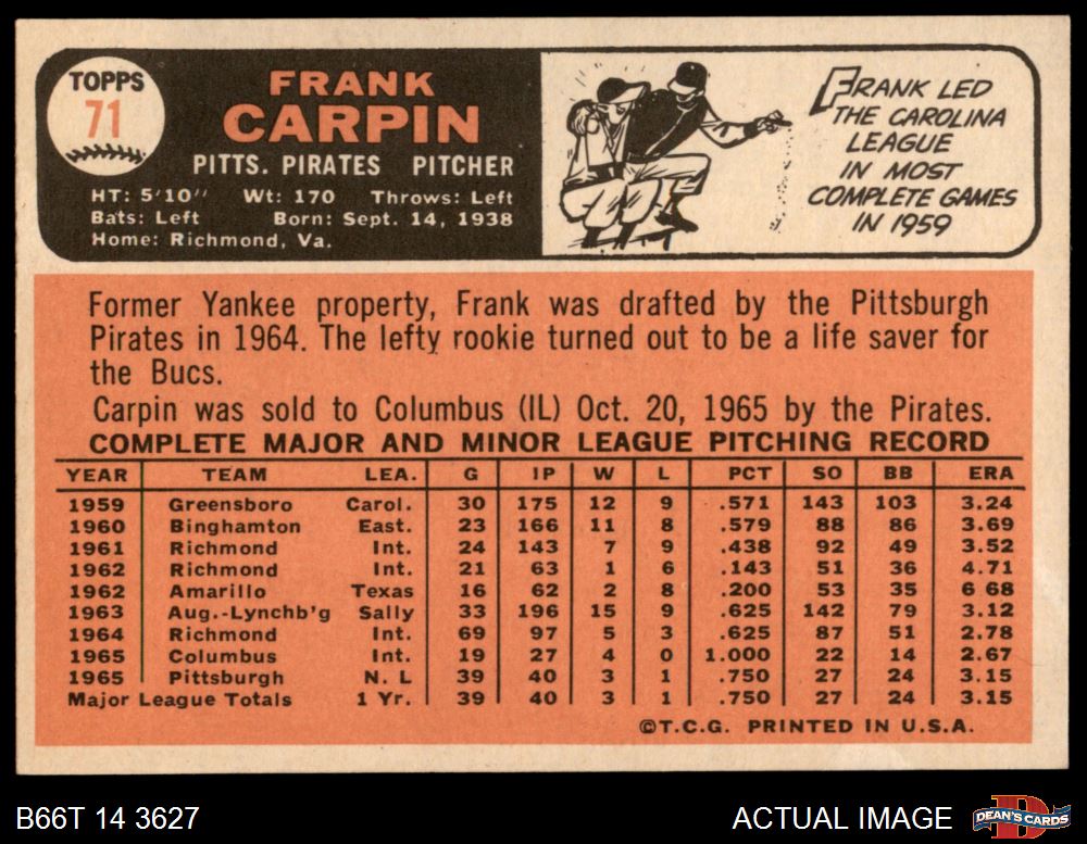 1966 Topps #71 Frank Carpin 6 - EX/MT