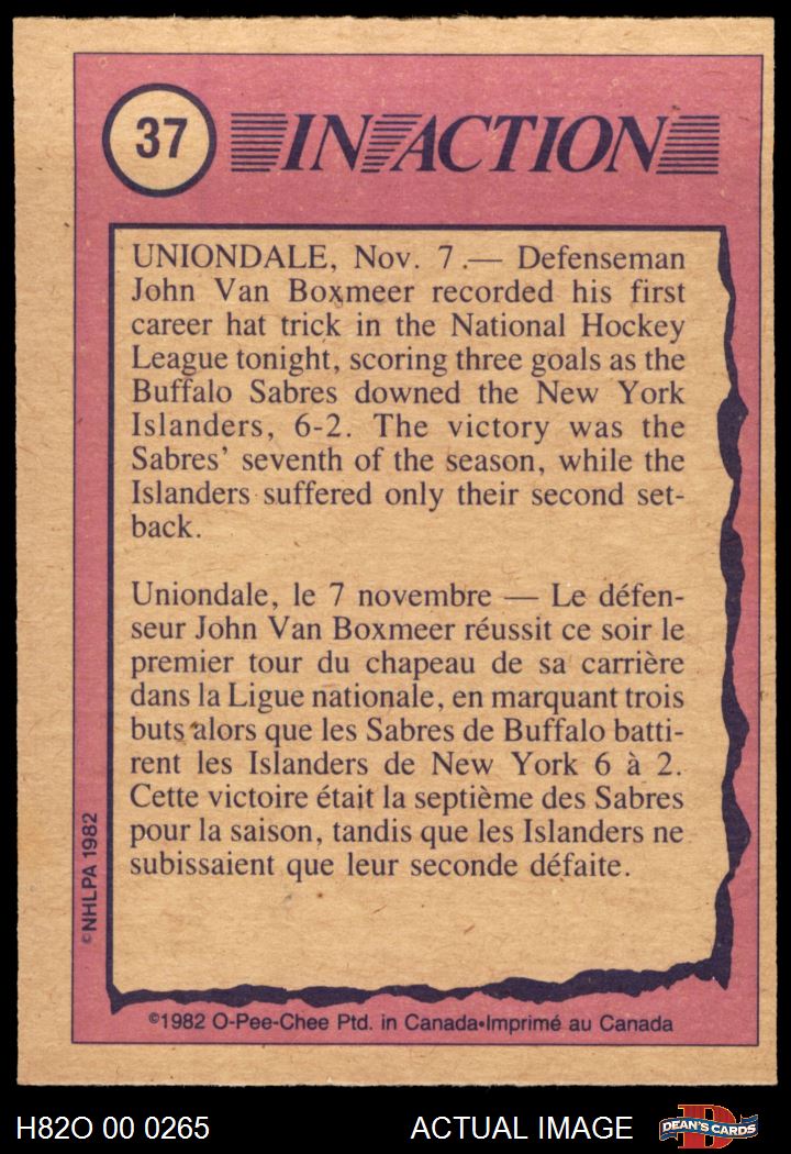 1982 O-Pee-Chee #37 - John Van Boxmeer In-Action 6 - EX/MT