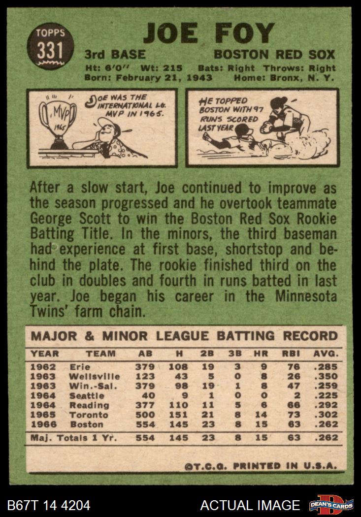 1967 Topps #331 Joe Foy 5 - EX