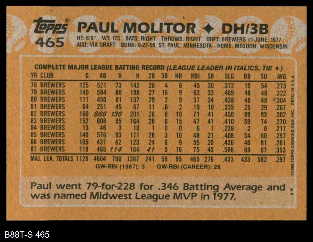 1988 Topps #465 Paul Molitor