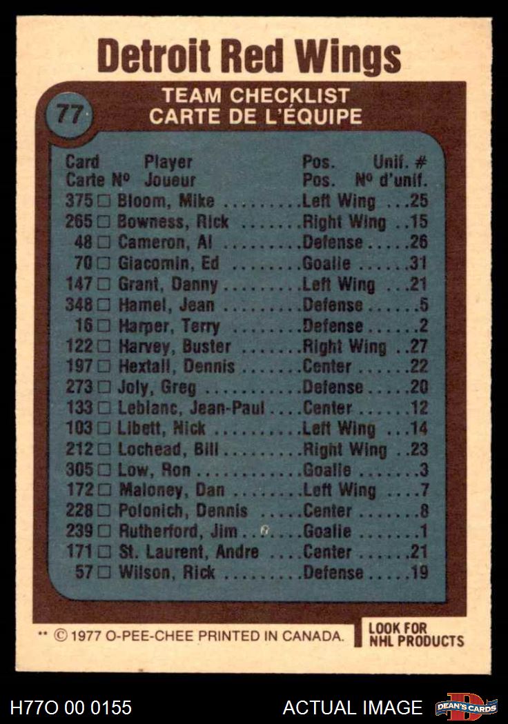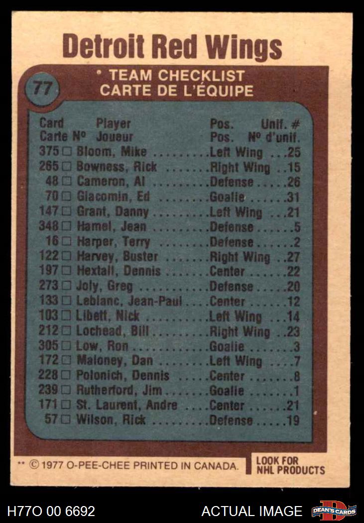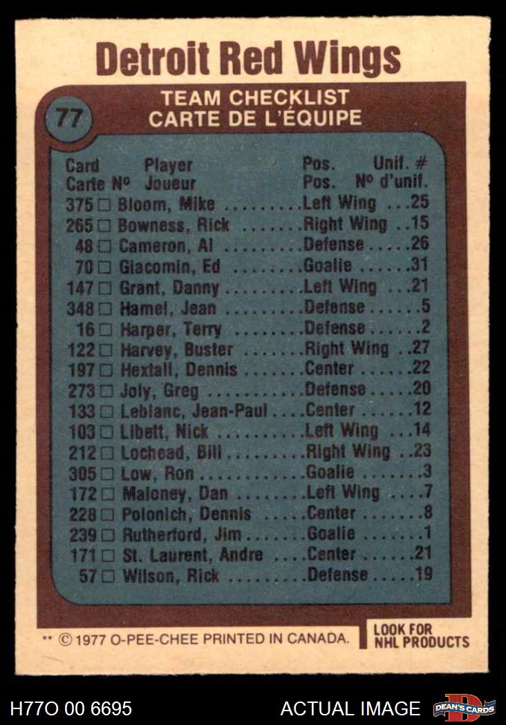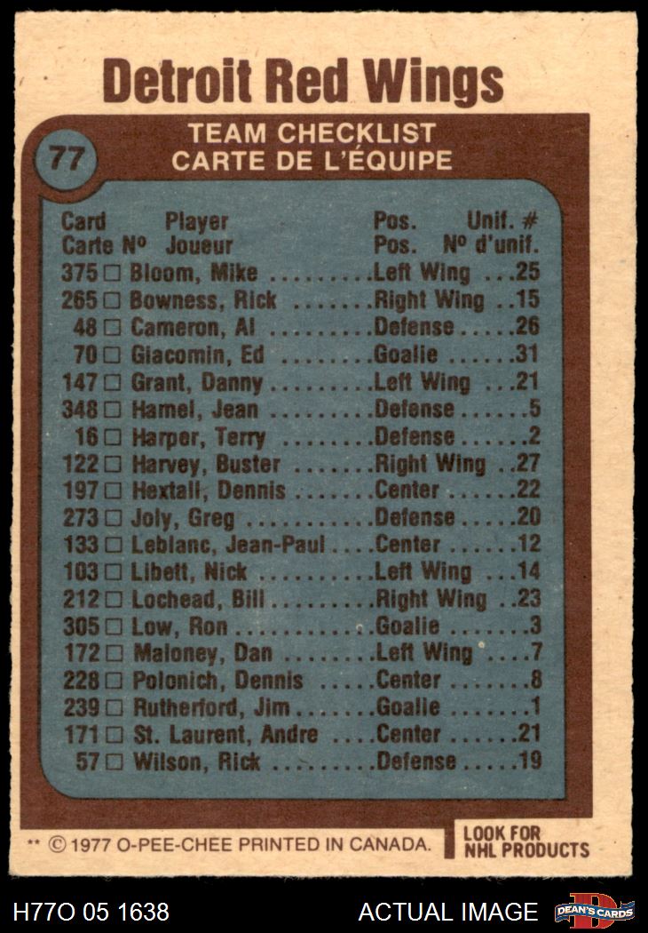 1977 O-Pee-Chee #77 Red Wings Team 6 - EX/MT