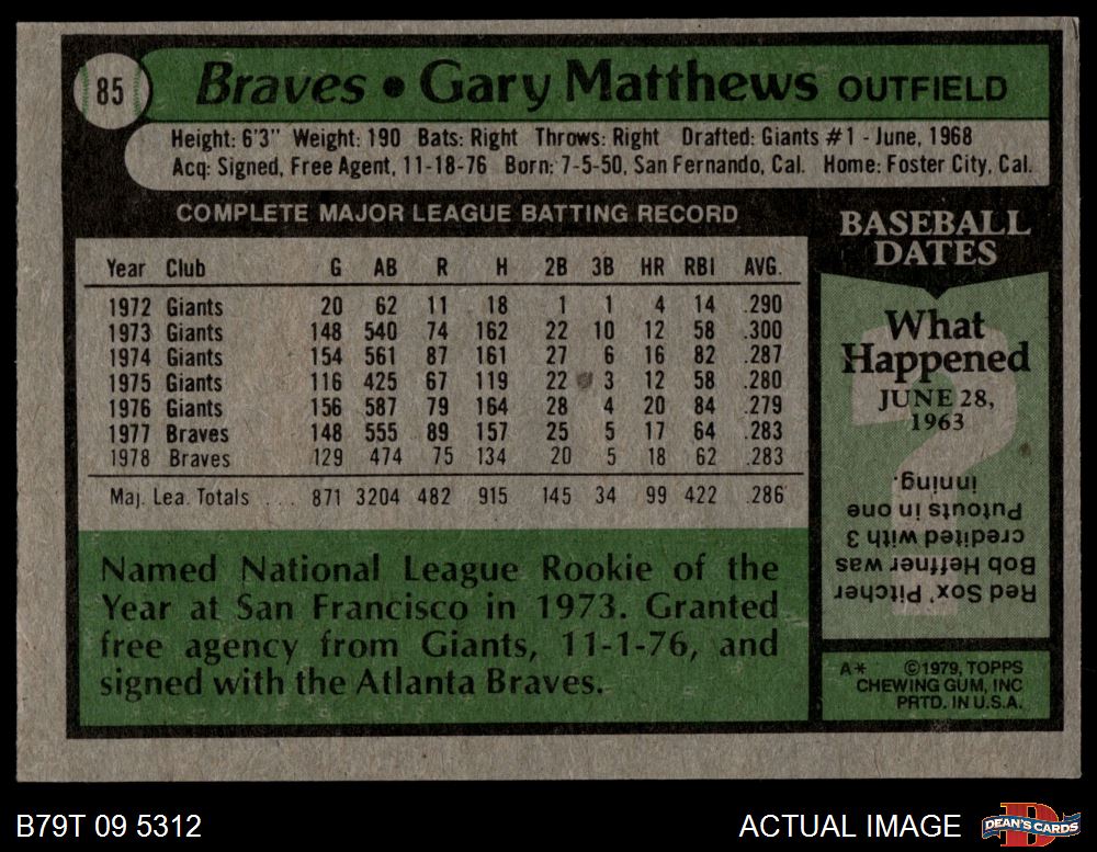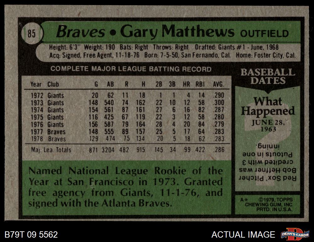 1979 Topps #85 Gary Matthews 4 - VG/EX