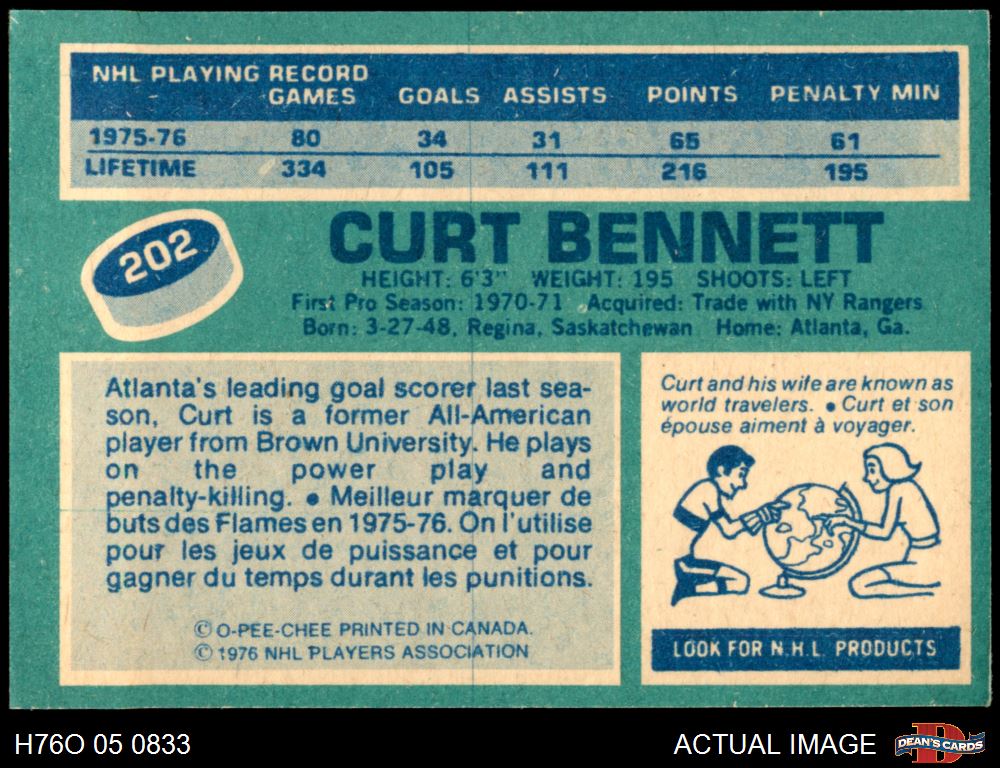 1976 O-Pee-Chee NHL #202 Curt Bennett 5 - EX