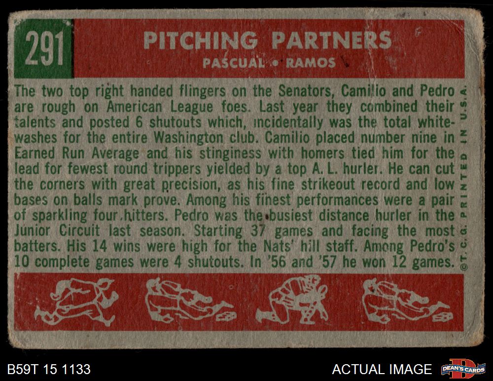 1959 Topps #291 - Pedro Ramos / Camilo Pascual Pitching Partners 1 - POOR