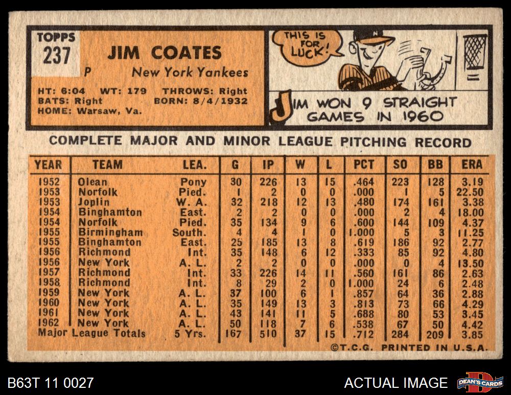 1963 Topps #237 Jim Coates 3 - VG
